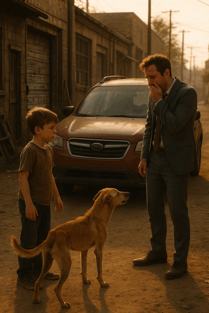 My 10-year-old son had been secretly sharing his lunch with a stray dog behind an old hardware store. I thought it was just a sweet act of kindness — until a red SUV showed up, and the dog’s heartbreaking past came to light.