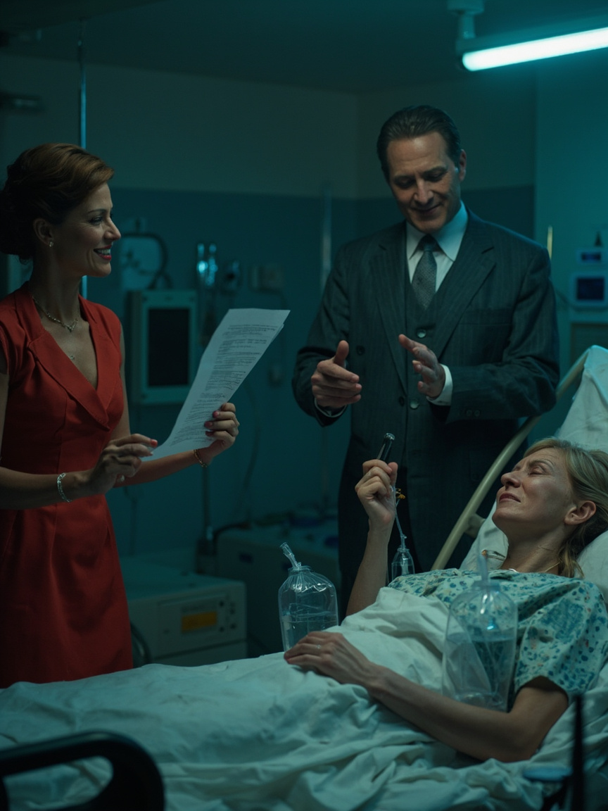 Her hand trembled. The room blurred as she stared at the papers. Years of emotional distance, unspoken resentment, and his infidelity all crashed into one unbearable moment. She wanted to scream, to fight—but her body was too weak.